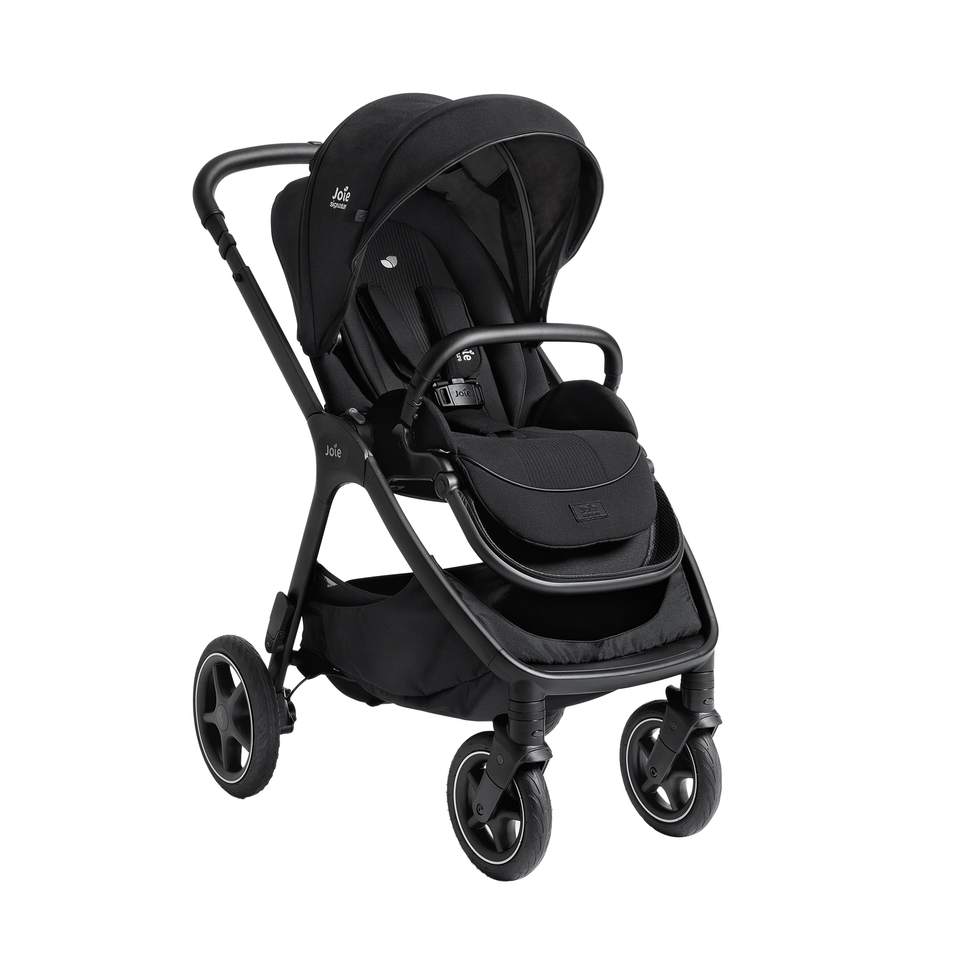 A complete newborn travel system with our finiti™ pram, calmi™ R129 car cot, i-Harbour™ car seat, and i-Base™ Encore car seat base.